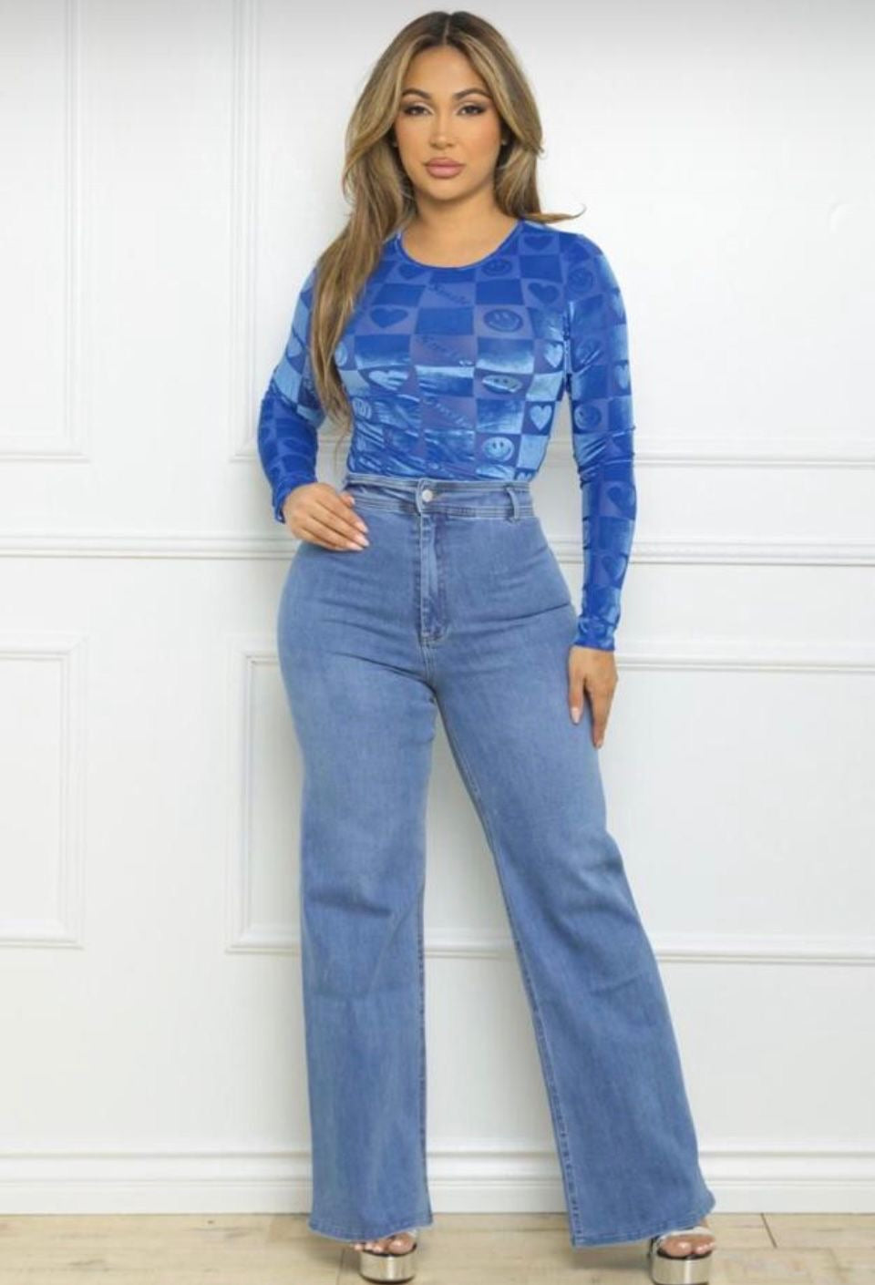 Blusa de mangas largas con detalles de diamantes