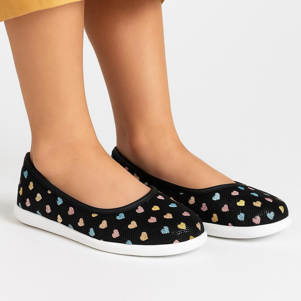 Zapatilla cerrada con detalles de corazón. Caracoles