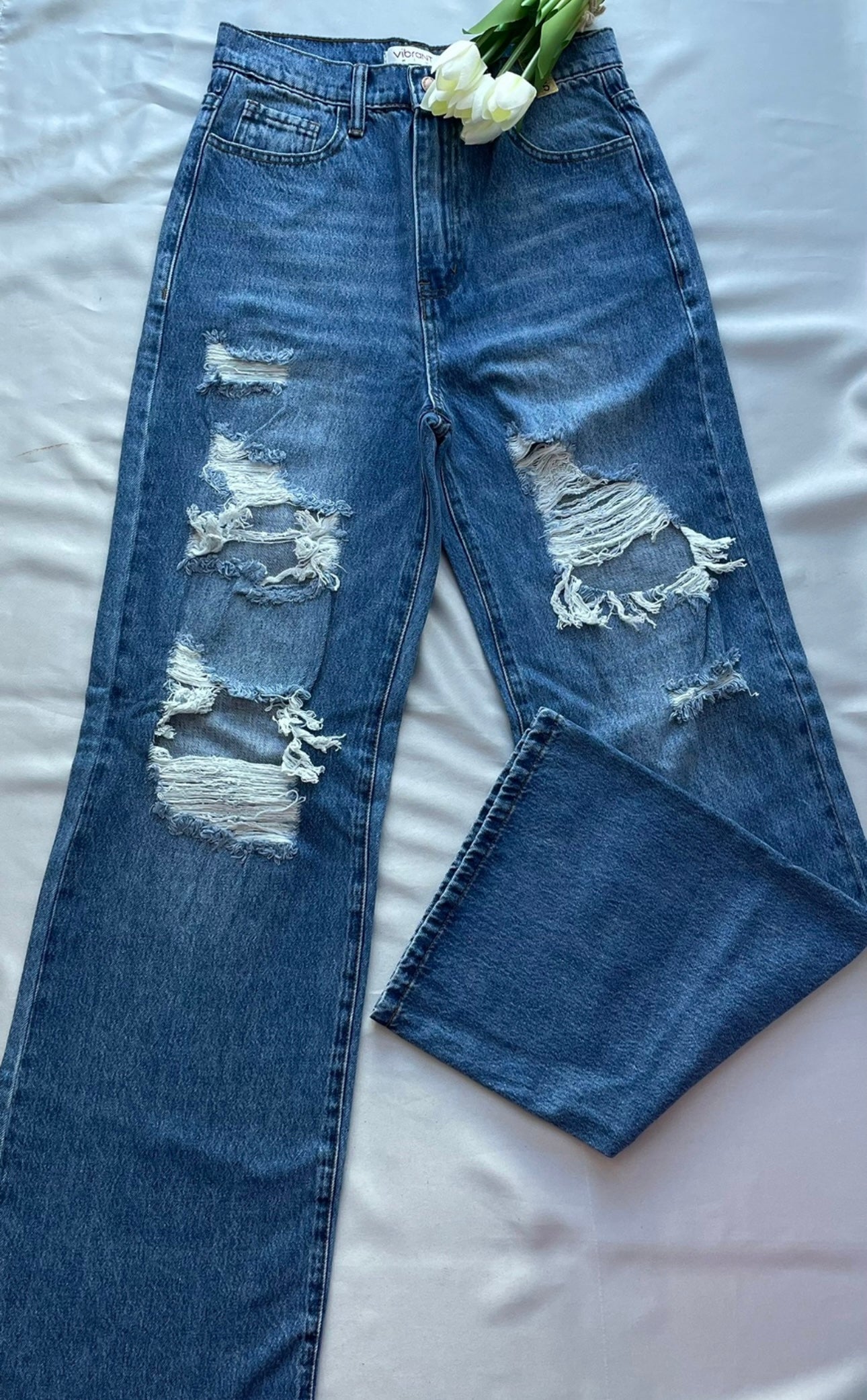 Jeans con desgaste, bota ancha